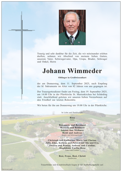 Tief betroffen haben wir die Nachricht erhalten, dass unser Sangesbruder Hans Wimmeder sen. am Donnerstag, den 11. September 2025 verstorben ist.